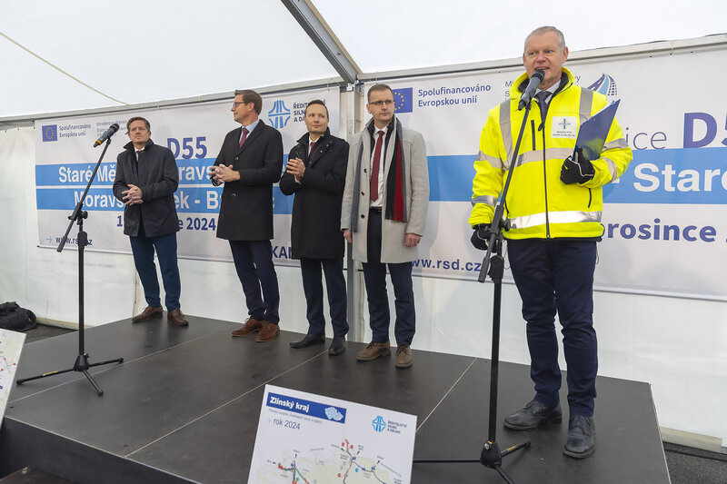 Tři úseky dálnice D55, dohromady dlouhé 21,4 kilometru, dnes zprovoznilo Ředitelství silnic a dálnic ČR (ŘSD). Jedná se o navazující úseky z Babic do Bzence ve Zlínském a Jihomoravském kraji. Z toho zhruba 4,5 kilometru bude v provozu zatím jen v polovičním profilu. ŘSD už buduje i další části této dálnice, příští rok zprovozní dvě z nich. Kromě toho se dnes řidičům nově otevřelo také 10 kilometrů dálnice D49 mezi Hulínem a Holešovem. Do poloviny roku 2025 se počítá i se zprovozněním dalšího úseku dlouhého téměř 8 kilometrů mezi Holešovem a Fryštákem.