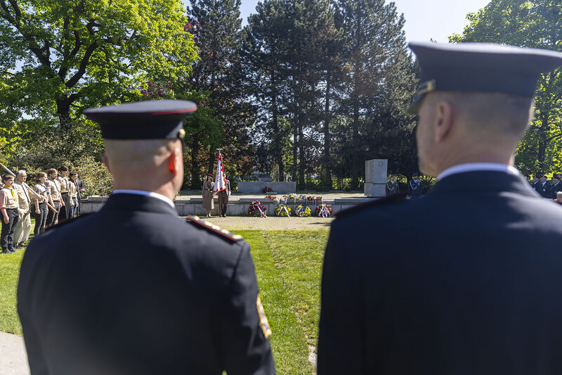 Pietní setkání se konalo dnes u Památníku obětem II. světové války v parku Komenského ve Zlíně. Spolu se zástupci kraje se akce zúčastnili například také představitelé statutárního města Zlína, Krajského vojenského velitelství Zlín či veteránů.