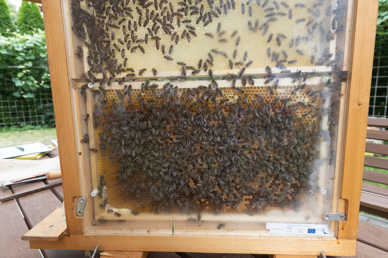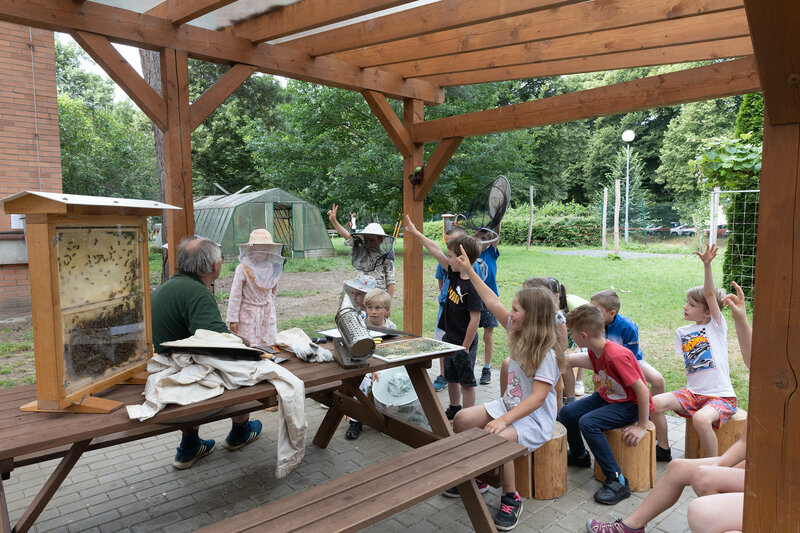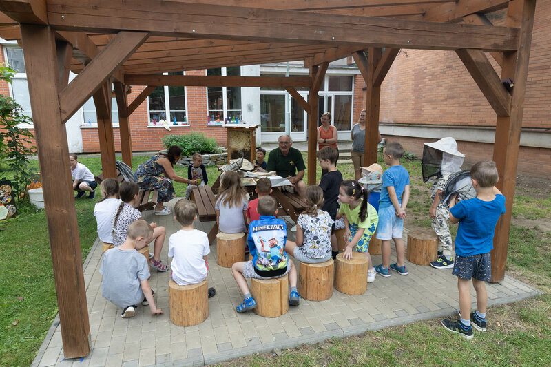 Na červnových besedách, které kraj uspořádal jako součást environmentální výchovy, se prvňáci dozvěděli, jak se mají v blízkosti včel chovat i to, jaký je jejich význam pro přírodu a člověka. Nahlédnou přitom mohli přímo do útrob včelího obydlí, a to díky průhledným stěnám pozorovacího úlu.