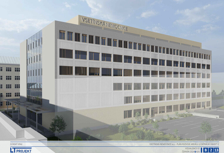 Podrobnou dispoziční studii řešící vybudování pavilonu operačních oborů Vsetínské nemocnice vlastněné Zlínským krajem schválili v pondělí 19. srpna krajští radní. Novostavba s odhadovanými náklady 1,7 miliardy korun vyroste naproti hlavnímu vjezdu do areálu nemocnice, v místě dnes nevyužitých budov staré interny. Studie vychází ze schváleného Plánu investičního rozvoje (generelu) areálu Vsetínské nemocnice. Ještě letos kraj plánuje vyhlásit veřejnou zakázku na výběr zhotovitele projektové dokumentace. Samotná výstavba se má uskutečnit v letech 2027-2030.