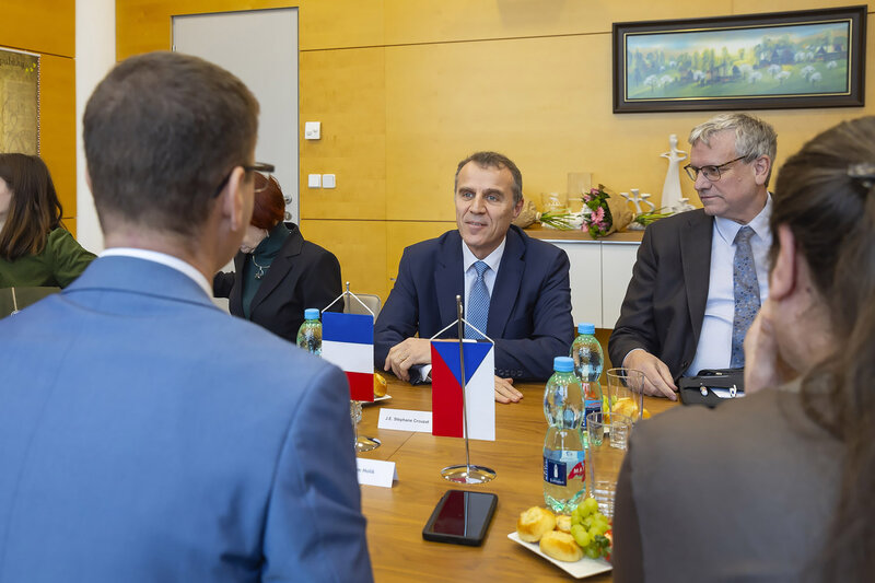 Velvyslance Francie v České republice J. E. Stéphana Crouzata přijali ve čtvrtek 16. ledna v sídle Zlínského kraje, Baťově mrakodrapu, hejtman Radim Holiš společně s krajskou radní pro školství Jindrou Mikuláštíkovou. Jeho program ve Zlíně bude odpoledne pokračovat návštěvou magistrátu a slavnostním otevřením nových prostor Francouzské aliance Zlín v jejím objektu v Divadelní ulici.