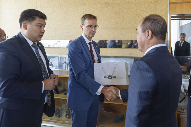 Po oficiálním jednání v Baťově mrakodrapu se delegace svezla unikátním Baťovým výtahem a poté si hosté prohlédli expozici Princip Baťa: dnes fantazie, zítra skutečnost v Muzeu jihovýchodní Moravy ve Zlíně. Nakonec pokračovali na Liptálské slavnosti, kde vystupuje i kazašský folklorní soubor Atameken. 56. ročník tohoto tradičního mezinárodního festivalu se koná do 25. srpna.