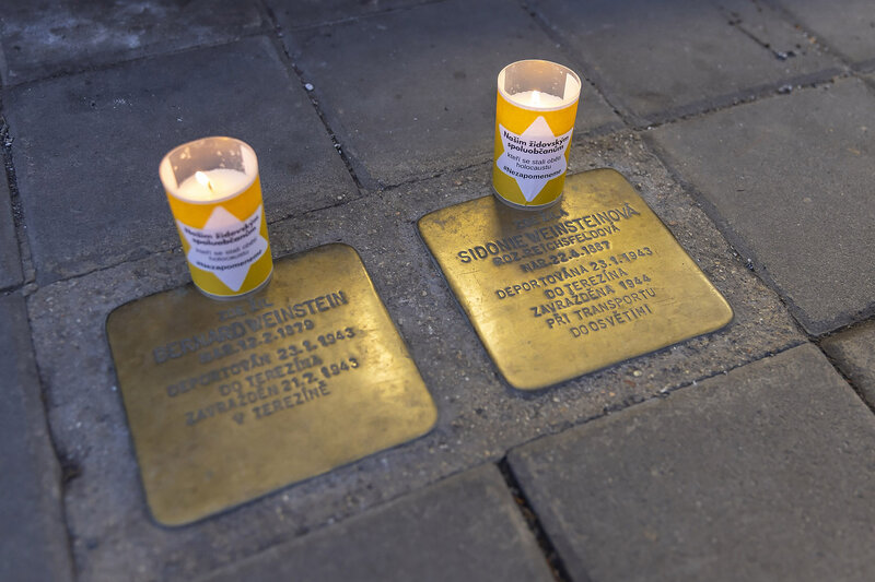 Uctění památky, které organizuje Velvyslanectví Státu Izrael, se koná napříč republikou většinou u takzvaných Stolpersteinů neboli kamenů zmizelých. Ty jsou rozmisťovány v podobě zlatých dlažebních kostek se jménem a údaji deportovaných osob poblíž míst, kde žily. Dva zlínské Stolpersteiny se nacházejí v Rašínově ulici před domem s číslem popisným 183, kde žila rodina Weinsteinových. Významný obchodník a majitel oděvní firmy Bernard Weinstein za první republiky v Rašínově ulici vlastnil obytný dům s prodejnou galanterie a krejčovským módním salonem. Zavražděn byl nacisty v roce 1943 v Terezíně. Jeho manželka Sidonie byla zavražděna v roce 1944 při transportu do Osvětimi.