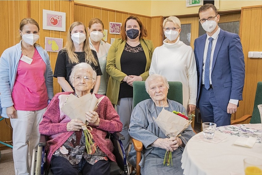 Hejtman se statutární náměstkyní poblahopřáli klientkám Domova seniorů k významnému životnímu jubileu